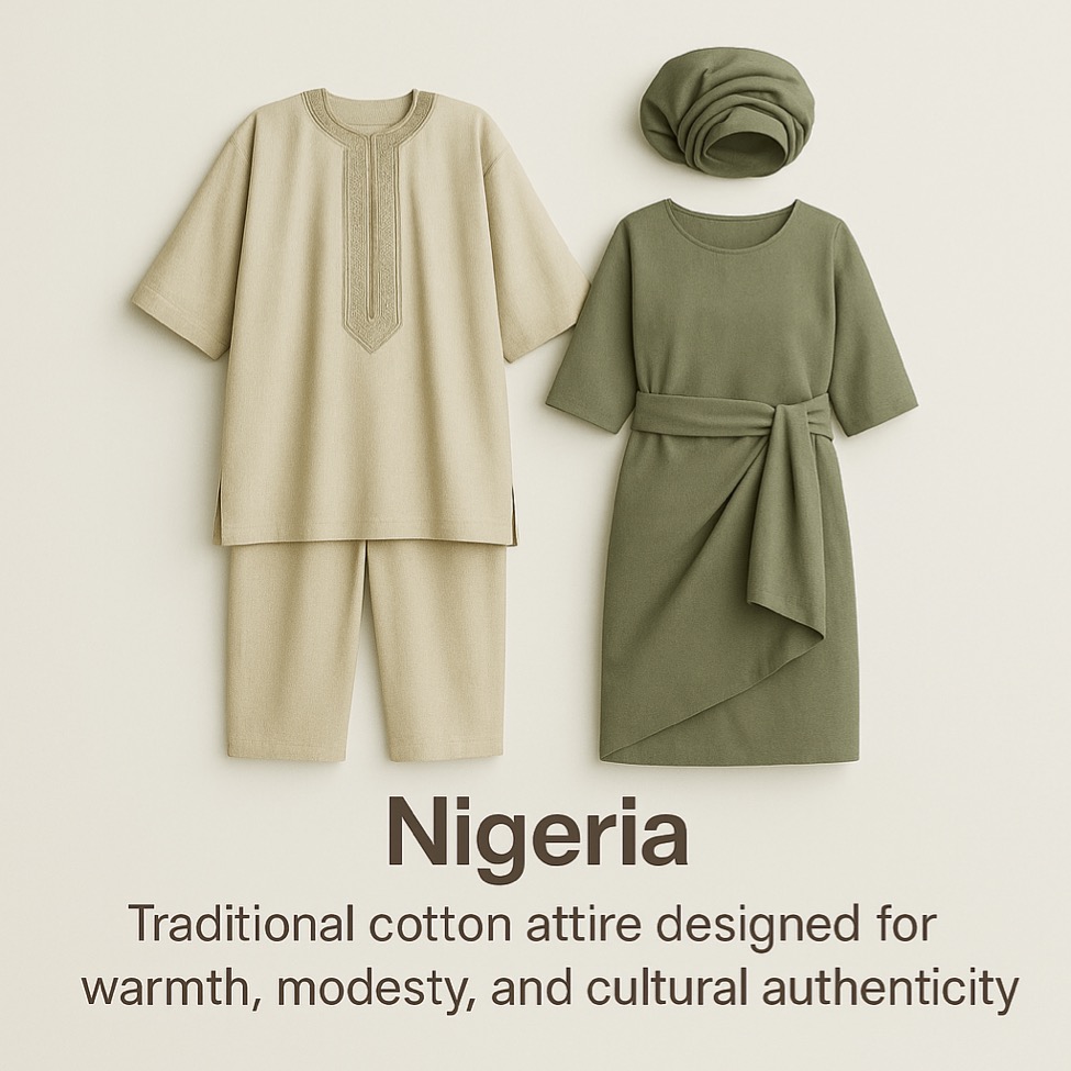 Nigerian Traditional Outfits are modest and culturally appropriate cotton garments designed for humanitarian distributions in West Africa. These garments ensure dignity, cultural preservation, and practical comfort in crisis, resettlement, or displacement settings.